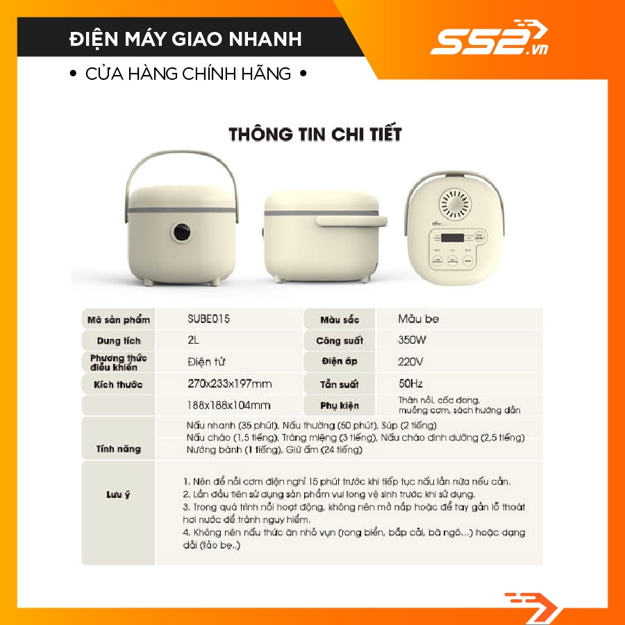 Nồi cơm điện BEAR SUBE015 - Bảo Hành Chính HãngModel: SUBE015