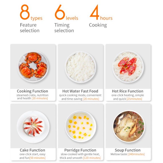 Cụ thể người dùng có thể linh hoạt lựa chọn 8 chức năng nấu như hấp, nấu nước, nấu cơm, cháo, soup,…
