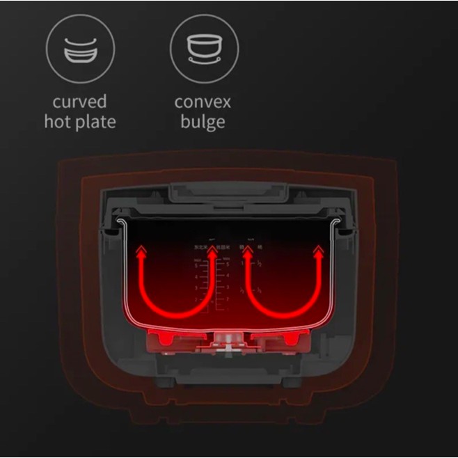 Sử dụng một tấm làm nóng dạng lõm cải tiến với một lớp lót đặc biệt ở đáy nồi giúp phân phối dòng nhiệt trong nồi được đồng đều, thúc đẩy nhanh chóng quá trình đun sôi, cải thiện độ thơm ngon của hạt gạo.