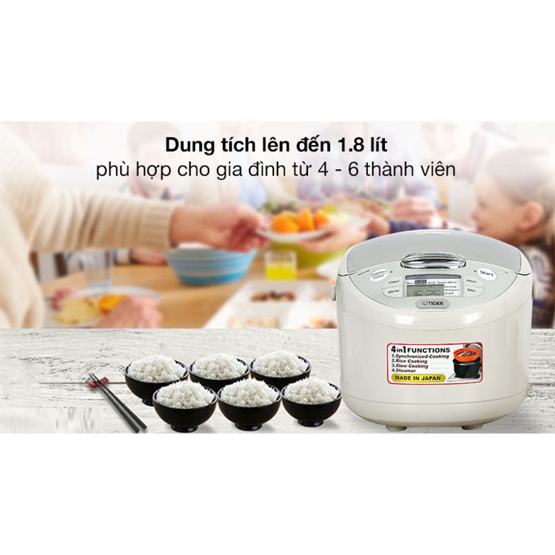 Giới thiệu [Mã ELHADEV giảm 4% đơn 300K] Nồi cơm điện Tiger 1.8 lít JAX-S18W - Hàng Chính Hãng