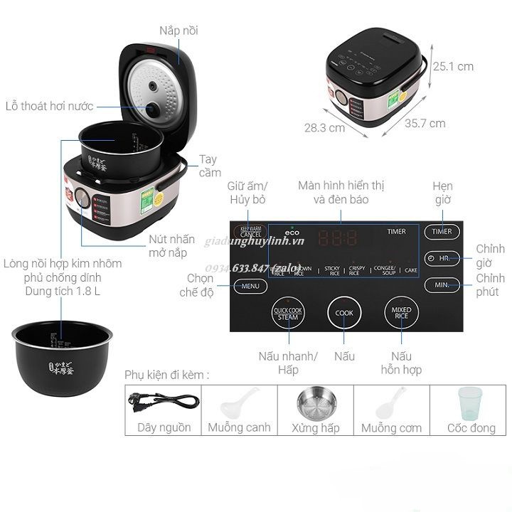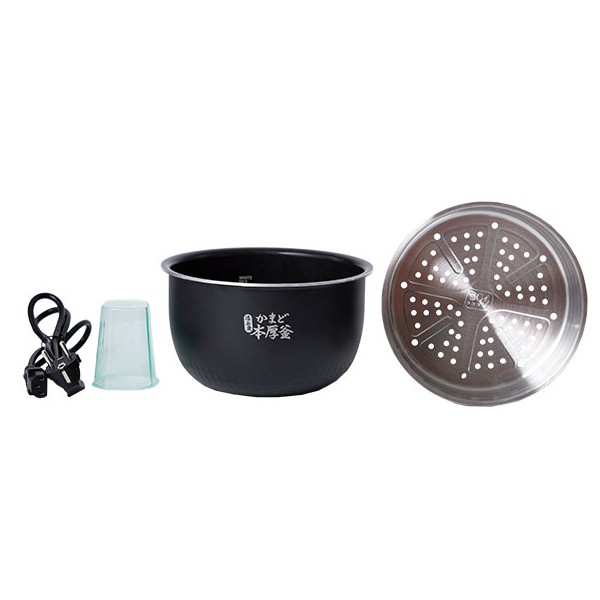 Đi kèm với nồi là dây điện, xửng hấp bằng thép không gỉ, cốc đong, muỗng cơm, muỗng canh