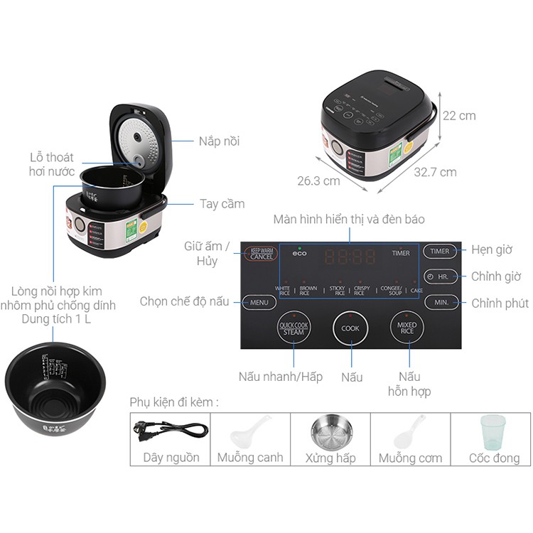 Tiện ích: Có xửng hấp, Hẹn giờ nấu cơm chín