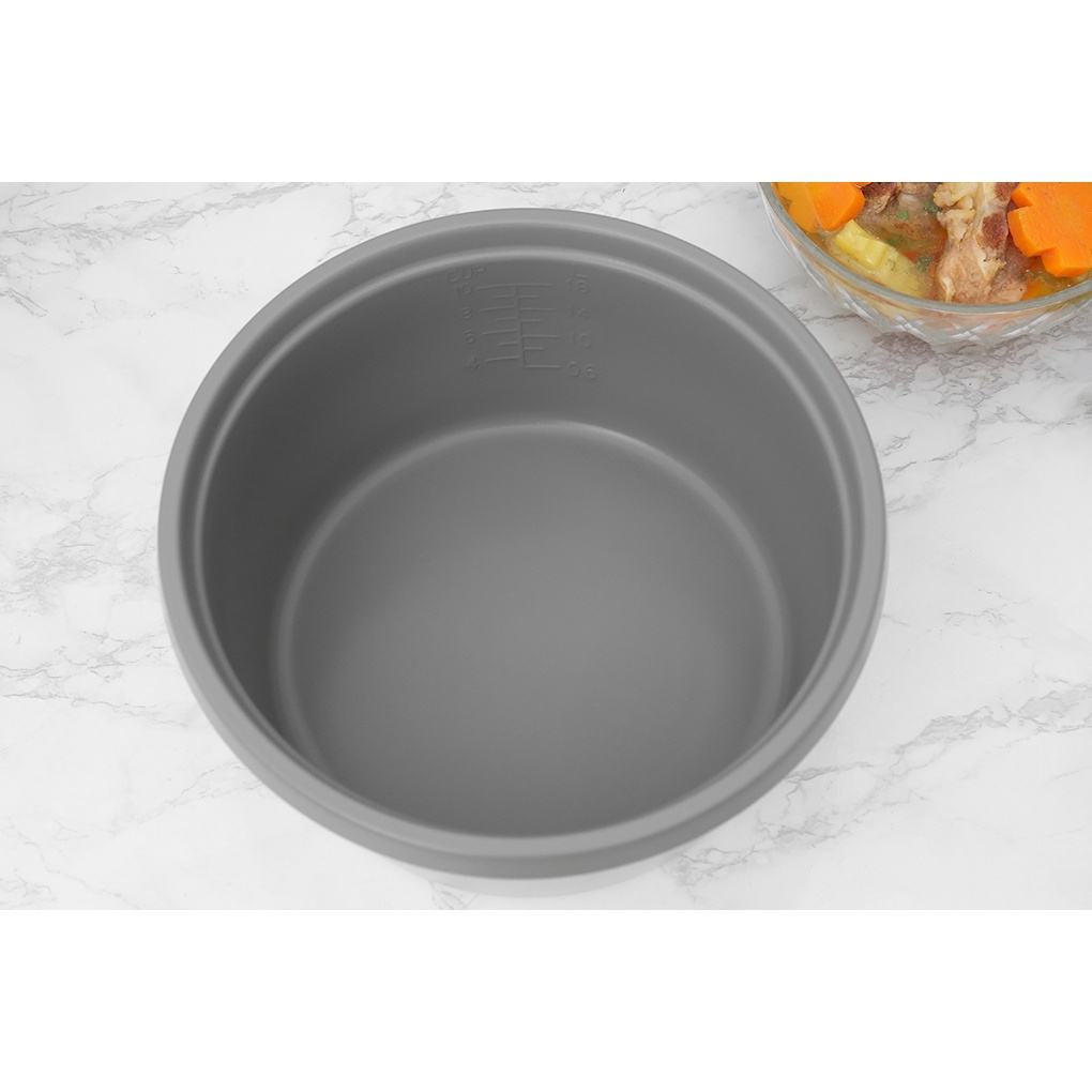 ● Lòng nồi hợp kim nhôm phủ chống dính dày 1.063 mm bền bỉ, an toàn, nấu cơm không dính cháy, dễ lau chùi