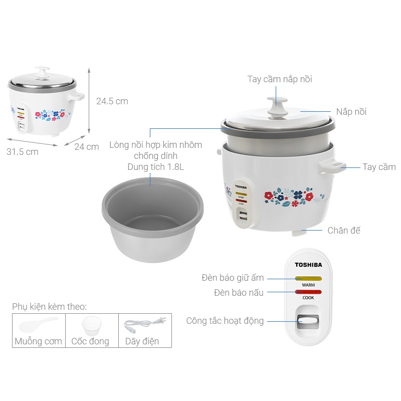 Thương hiệu: Toshiba | Xem thêm các sản phẩm Nồi cơm điện của ToshibaMô tả ngắn