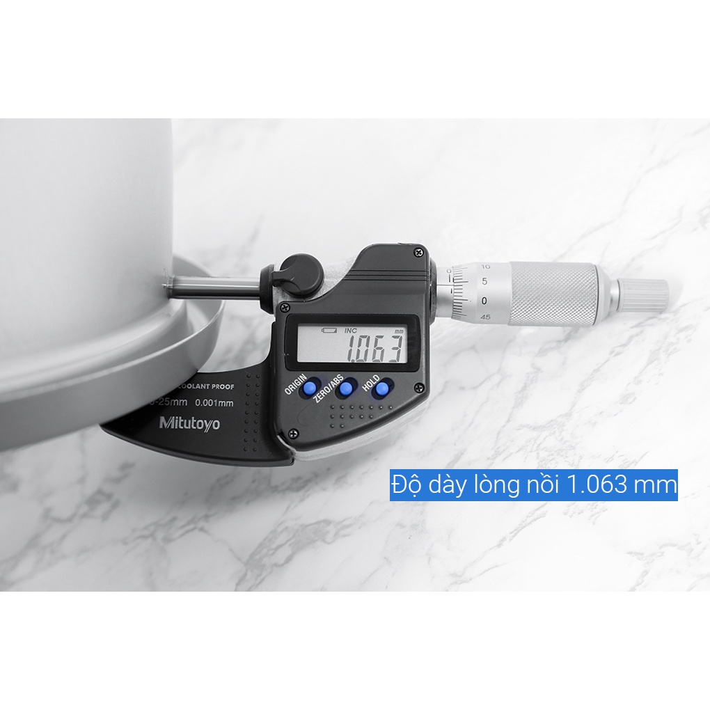 ● Lòng nồi hợp kim nhôm phủ chống dính dày 1.063 mm bền bỉ, an toàn, nấu cơm không dính cháy, dễ lau chùi