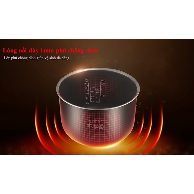 Lòng nồi hợp kim tráng chống dính bền tốt, nấu cơm an toàn, chống dính cháy, vệ sinh đơn giản sau khi dùng. Lòng nồi với chất liệu chống oxy hóa cao cấp giúp cơm được nấu nhanh nhưng vẫn đảm bảo an toàn sức khỏe cho cả gia đình.