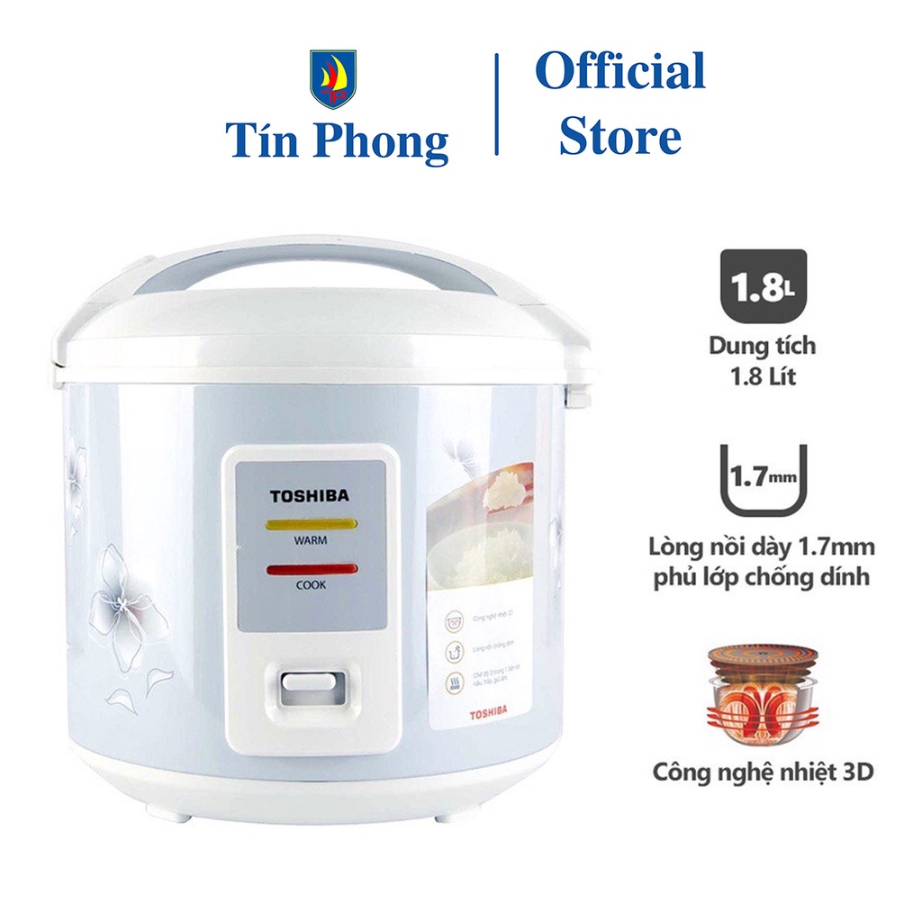 Nồi cơm điện Toshiba RC-18JFM2(H)VN - 1.8 lít - Công nghệ truyền nhiệt 3D - 3-5 người ăn - Hàng chính hãng
