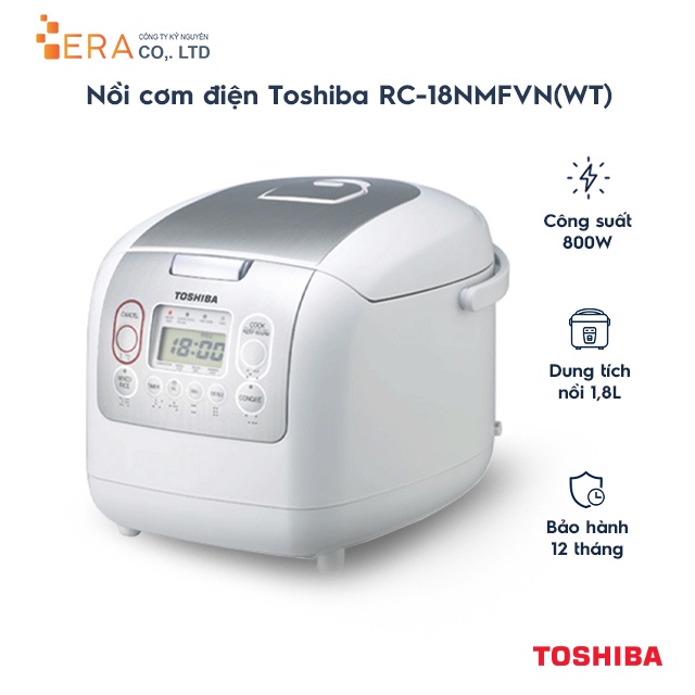 - Nồi cơm điện tử Toshiba 1.8 lít RC-18NMFVN(WT) đến từ thương hiệu Toshiba – Nhật Bản, chất lượng tốt, nấu cơm ngon, dùng bền.