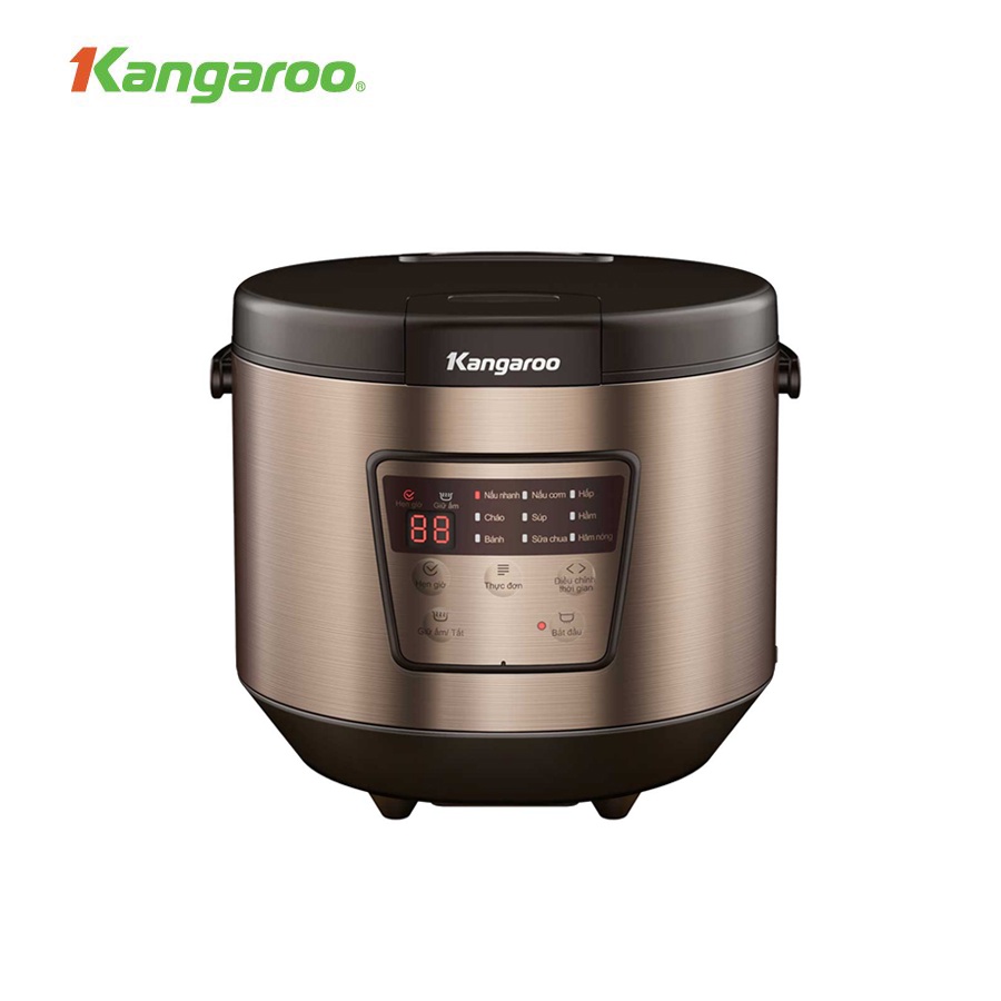 Với 9 chức năng nấu đã được cài đặt sẵn tự động như: nấu cháo, nấu cơm, súp, hầm, sữa chua, hấp,… nồi cơm điện KG18DR7 có khả năng chế biến đa dạng thực phẩm với rất nhiều món ăn khác nhau. Ngoài ra Nồi cơm điện tử Kangaroo còn có chức năng hẹn giờ tự động và giữ ấm rất thuận tiện.