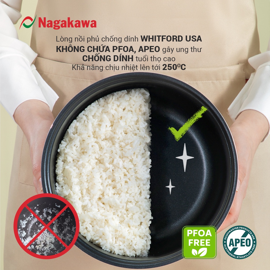 Giới thiệu [Mã ELHADEV giảm 4% đơn 300K] Nồi cơm điện tử 1.8L Nagakawa NAG0135