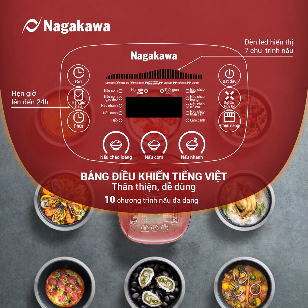 [Mã ELHADEV giảm 4% đơn 300K] Nồi cơm điện tử 1.8L Nagakawa NAG0135