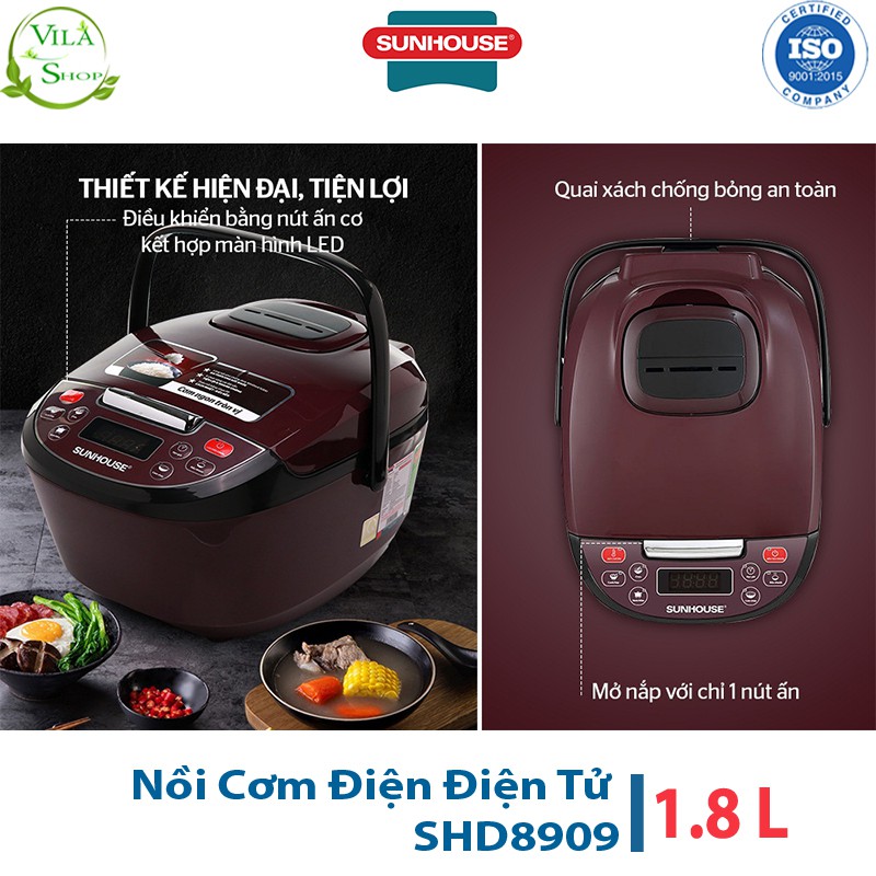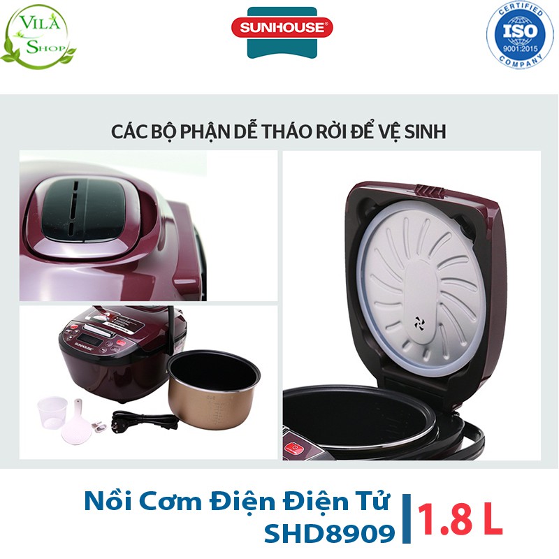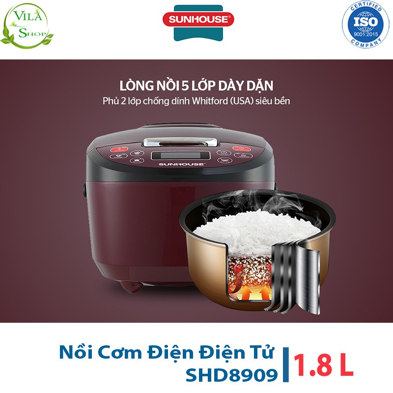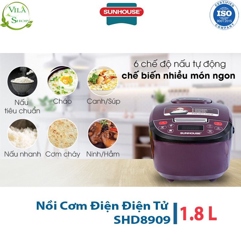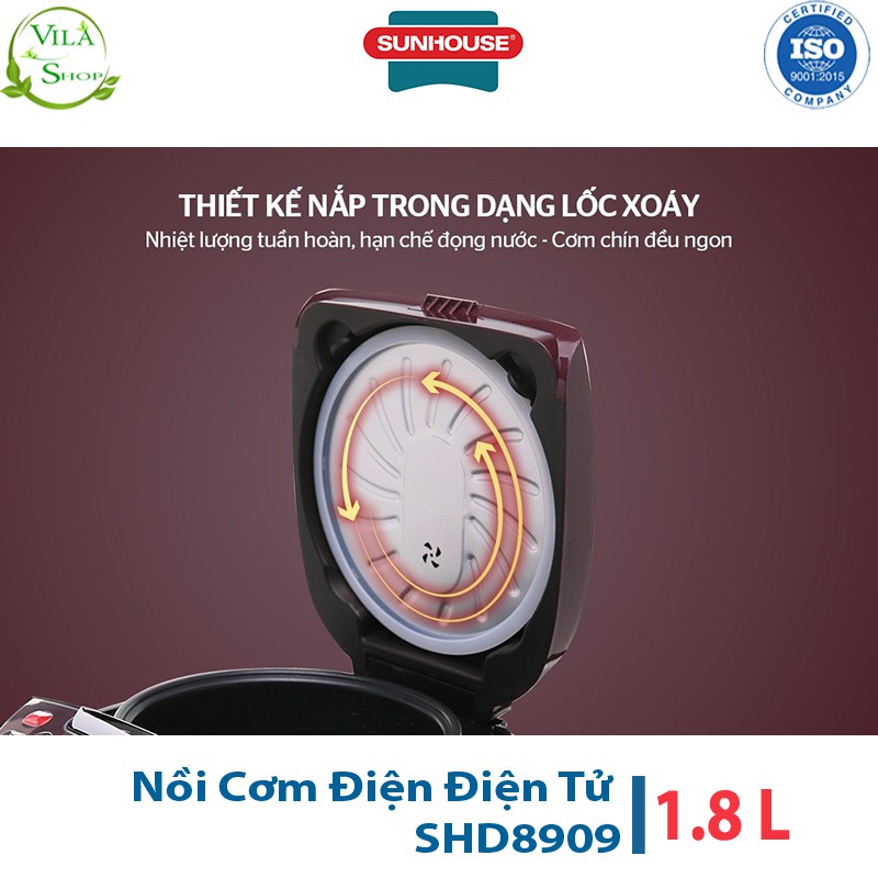 Giới thiệu Nồi Cơm Điện Tử 1.8L Sunhouse SHD8909, Nồi Cơm Trang Bị Hệ Thống Nấu Tự Động
