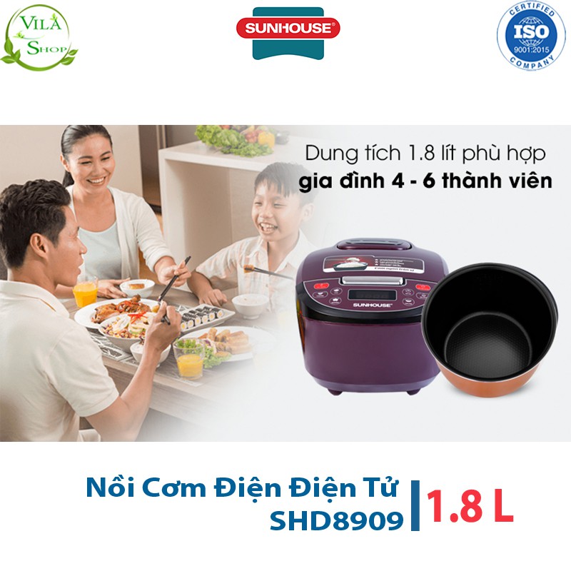 Nồi Cơm Điện Tử 1.8L Sunhouse SHD8909, Nồi Cơm Trang Bị Hệ Thống Nấu Tự Động