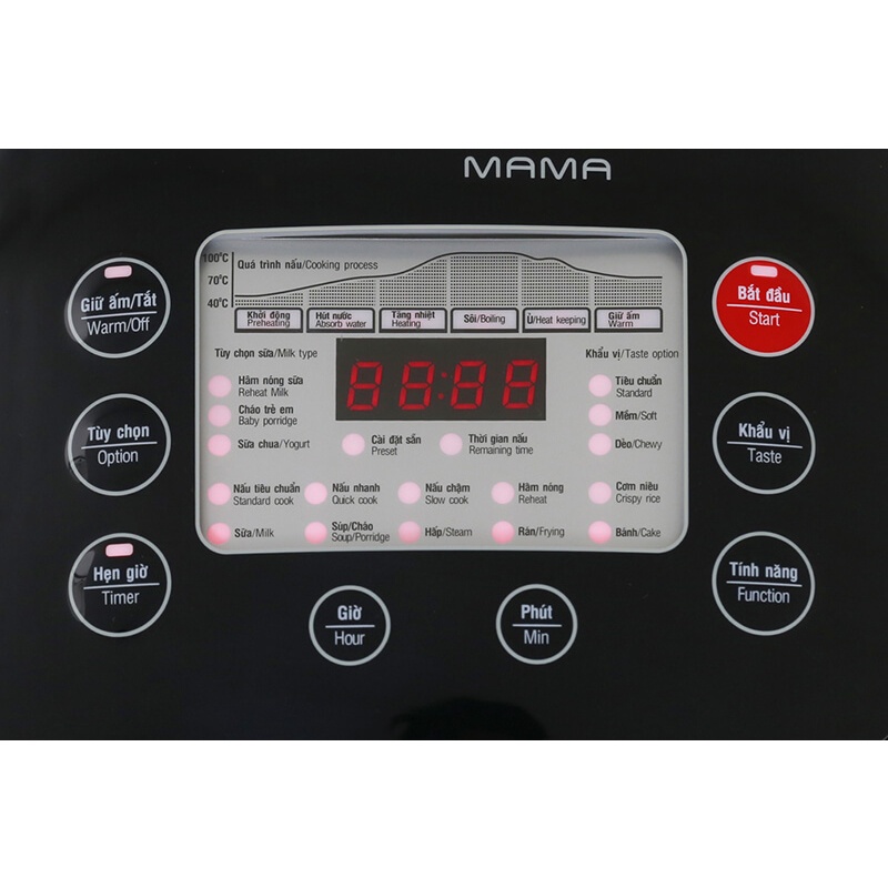 Chế độ: Đa chức năng nấu: cơm, cháo, chè, hấp, soup….