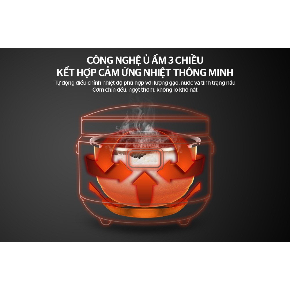 Ứng dụng công nghệ ủ ấm 3 chiều cho nhiệt lượng tỏa rộng, đều khắp lòng nồi (thay vì chỉ từ mâm nhiệt phía dưới) giúp cơm nấu chín ngon, hạn chế tình trạng cơm nhão, khô, sống. Sau khi cơm chín, nhiệt lượng còn giữ lại trong nồi, bảo toàn nguyên vẹn hương vị, chất dinh dưỡng tới 48 tiếng, giúp gia đình bạn luôn có cơm ngon để thưởng thức mọi lúc.