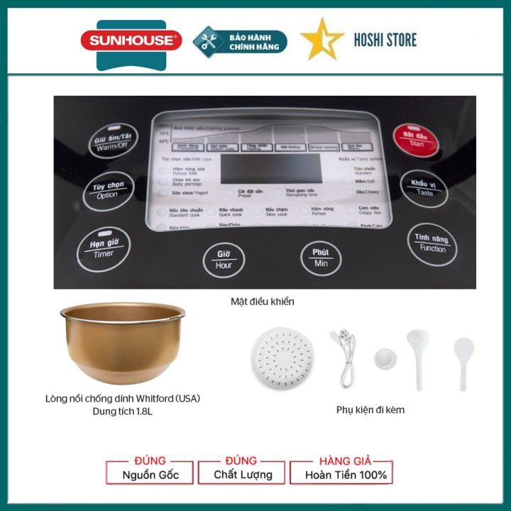 Thiết Bị Điện Gia Dụng > Đồ gia dụng nhà bếp > Nồi cơm điện || NỒI CƠM ĐIỆN TỬ 1.8L SUNHOUSE MAMA SHD8903,chống dính siêu bền bảng điều khiển tiếng việt dễ sử dụng, bảo hành 2 nămCòn hàng