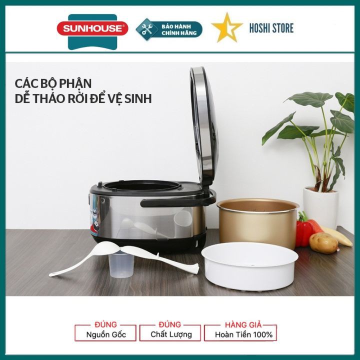 👉 Nồi cơm điện tử 1.8L SUNHOUSE MAMA SHD8903 cấu tạo từ nhiều chất liệu bền chắc, an toàn với sức khỏe người tiêu dùng.
