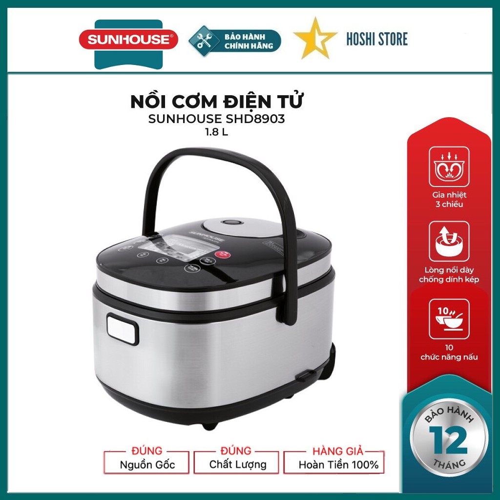 NỒI CƠM ĐIỆN TỬ 1.8L SUNHOUSE MAMA SHD8903,chống dính siêu bền bảng điều khiển tiếng việt dễ sử dụng, bảo hành 2 năm