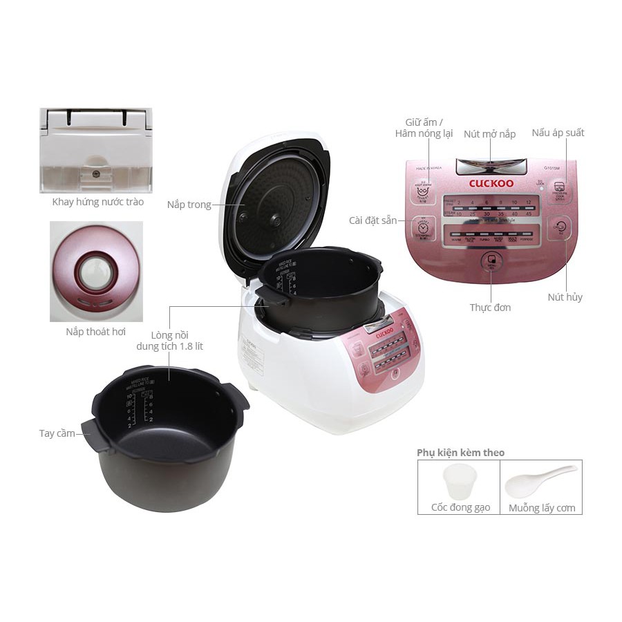 Giới thiệu Nồi cơm điện tử áp suất Cuckoo CRP-G1015MH dung tích 1.8 lít xuất xứ Hàn Quốc màu hồng - Bảo hành chính hãng 24 tháng