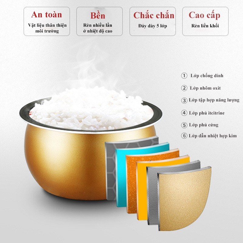 Nồi Cơm Điện Tử BẢO HÀNH 12 THÁNG Nồi Cơm Đa Năng Dung Tích 2 Lít Chống Dính 5 Lớp