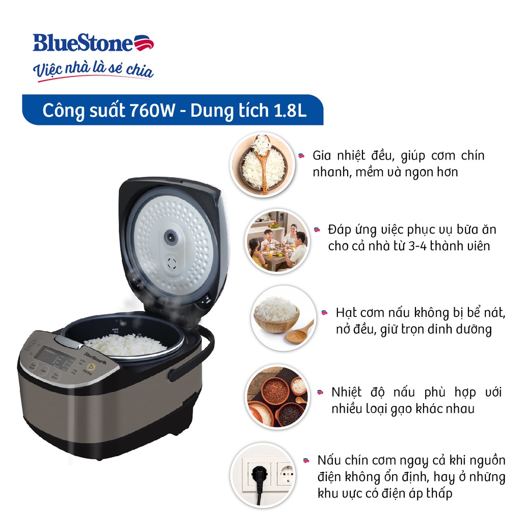 [Mã ELHAMS5 giảm 6% đơn 300K] Nồi Cơm Điện Tử BlueStone RCB-5938, 1.8Lit - 760W, Bảo Hành Chính Hãng 2 Năm
