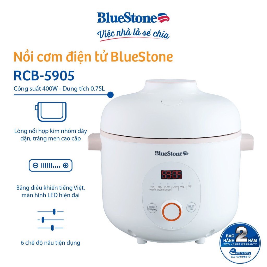 Nồi Cơm Điện Tử BlueStone RCB-5905 - 0.75L - Hàng chính hãng - Bảo hành 24 tháng