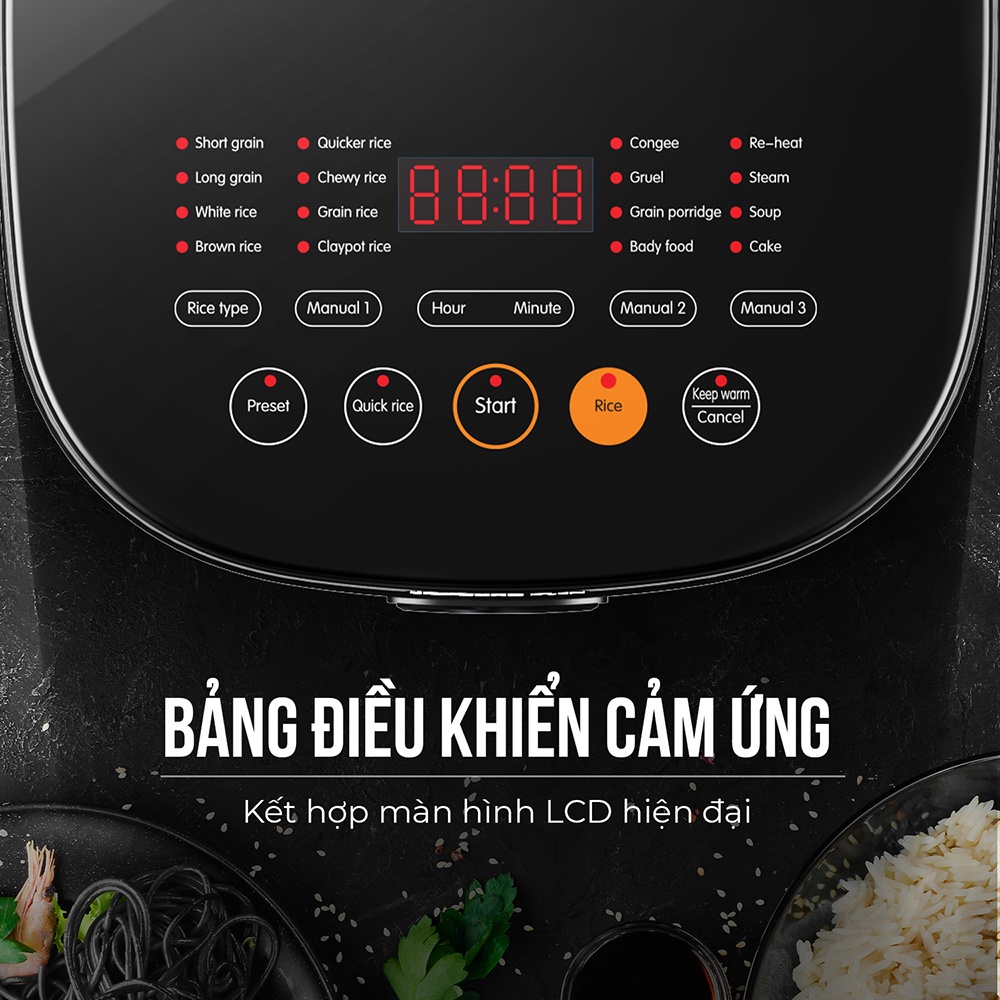 - Bảng điều khiển bằng phím cảm ứng, kết hợp màn hình LCD hiện đại