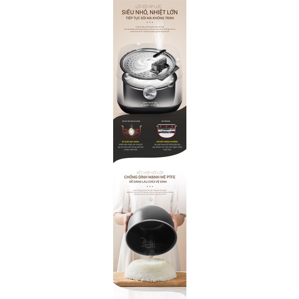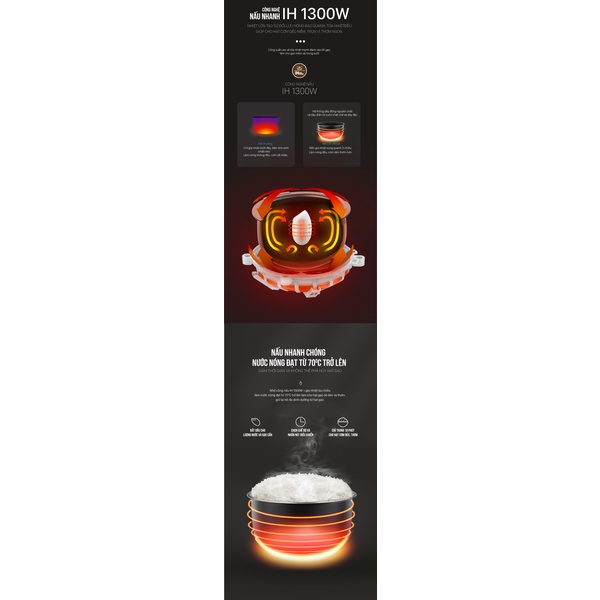 Công suất 1300W, dung tích 1.5L, Công nghệ nấu cao tần 3D IH