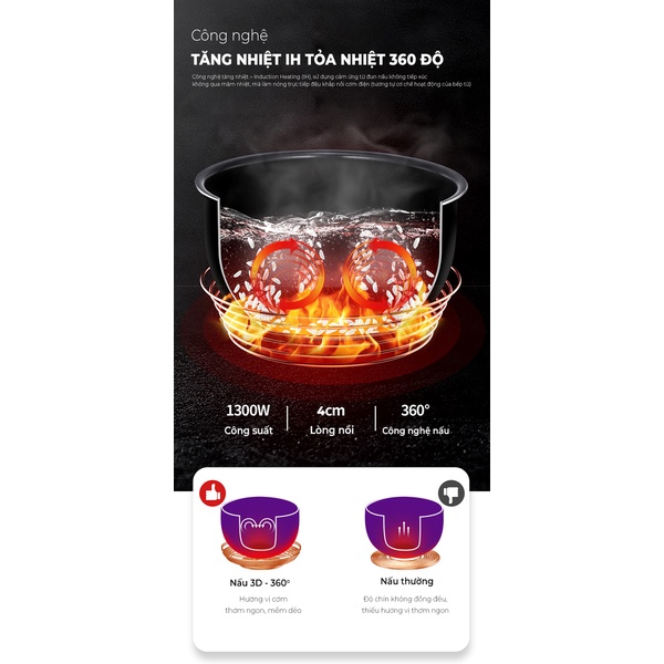Công nghệ tăng nhiệt IH tỏa nhiệt 360 độ