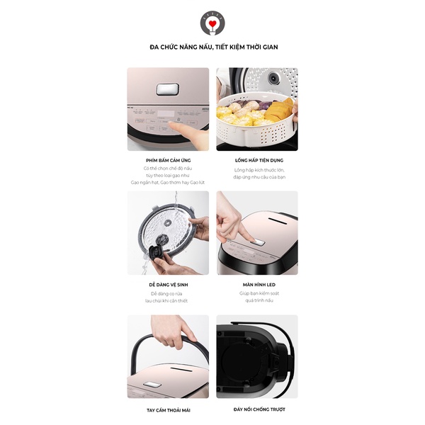 Ngoài chức năng chính là nấu cơm, sản phẩm còn có nhiều chức năng hữu ích khác như: Nấu cháo nguyên hạt hay cháo nhừ, Nấu súp, Làm bánh, Hấp, Hâm nóng...