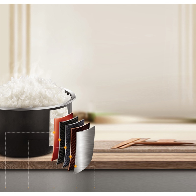 Thiết kế lòng nồi dày giúp dẫn nhiệt hiệu quả và giữ nhiệt tốt, đem lại cho người dùng hương vị cơm nấu thơm ngon, mềm dẻo. Lòng nồi dày 4 mm bằng hợp kim nhôm sơn chống dính DAIKIN PTFE - Nhật Bản dẫn nhiệt nhanh, duy trì độ nóng, nâng cao hiệu quả nấu, có nhiều ưu điểm đảm bảo an toàn cho sức khỏe: chịu được nhiệt độ cao, không phát sinh các khí độc hại trong quá trình sử dụng, không chứa các độc tố gây hại cho sức khỏe. Ngoài ra, lớp phủ chống dính này còn giúp việc vệ sinh nồi trở nên dễ dàng và nhanh chóng hơn.