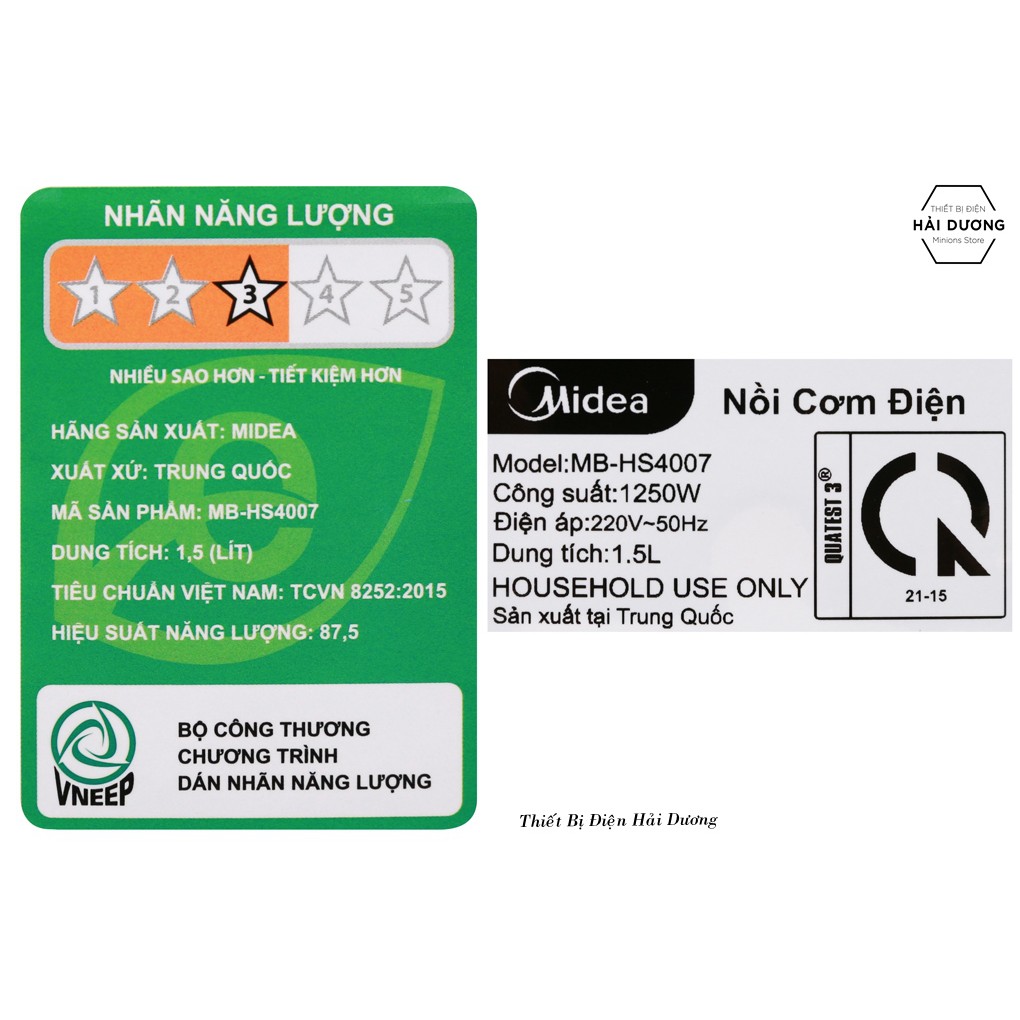 Thiết Bị Điện Gia Dụng > Đồ gia dụng nhà bếp > Nồi cơm điện || Nồi cơm điện tử cao tần Midea MB-HS4007 1.5L - Công suất 1200W - Phù hợp 3-4 thành viên - Bảo hành 1 nămCòn hàng