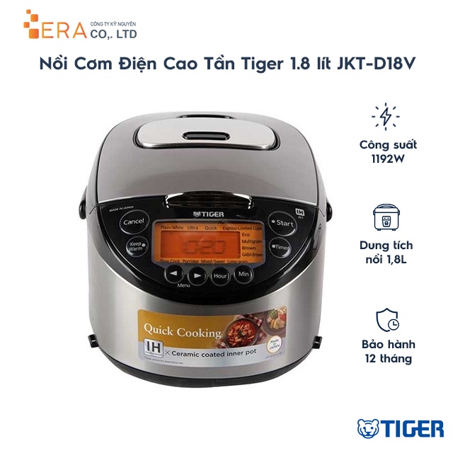 Giới thiệu [Mã ELHADEV giảm 4% đơn 300K] Nồi cơm điện tử cao tần Tiger JKT-D18V dung tích 1.8L