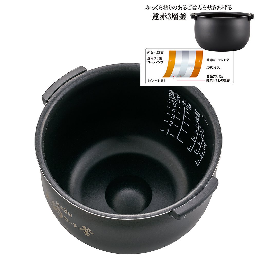 Lồng nồi cơm được làm bằng 5 lớp hợp kim nhôm và kim loại tinh khiết với công nghệ phủ 3 lớp men gốm “Cordierite Ceramic” chống dính bằng tia hồng ngoại dầy 2.5mm, không gây ra những chất độc hại cho sức khỏe, độ bền cao, hạn chế bám bẩn và dễ vệ sinh cũng như giữ cơm nóng lâu hơn.