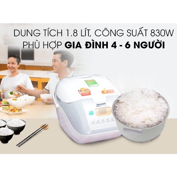 - Nồi cơm điện tử Sharp có dung tích 1.8 lít thích hợp gia đình từ 4 đến 6 người ăn.
