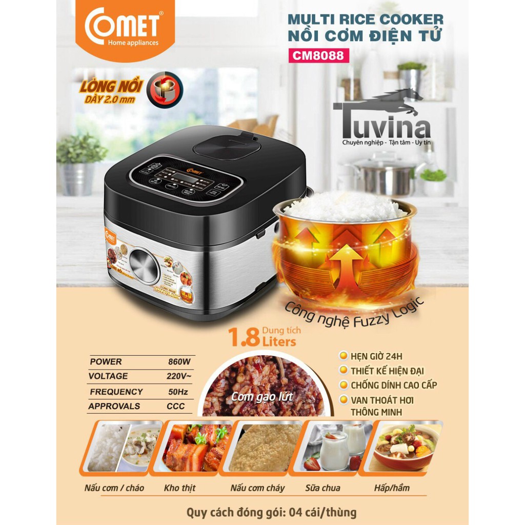 [Mã 254ELSALE giảm 7% đơn 300K] Nồi Cơm Điện Tử Comet 1.8L CM8088 - Lòng Niêu Chống Dính - Hàng Chính Hãng