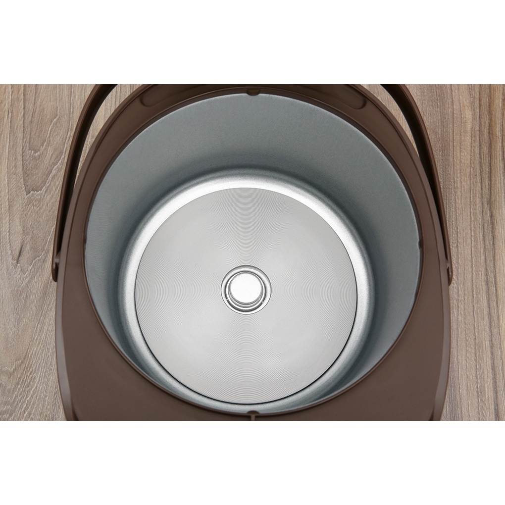 ● Lòng nồi 5 lớp hợp kim nhôm phủ chống dính dày 2 mm, thiết kế tổ ong giữ nhiệt hiệu quả, giúp nấu cơm ngon, dễ vệ sinh