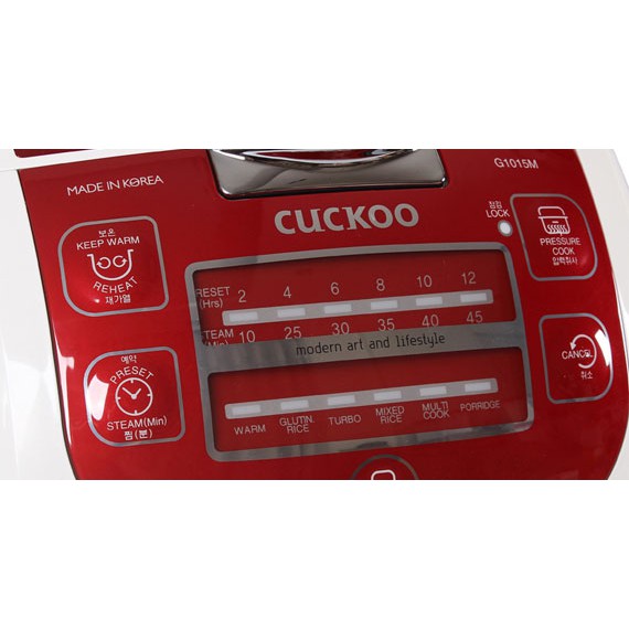 - Hơn nữa nồi có chế độ hẹn giờ và ngoài nấu cơm còn có thể nấu súp, nấu cháo, nấu cơm nếp. Chế độ tiện dụng lại đa năng, nên nồi cơm điện tử Cuckoo 1.8L CRP-G1015M-R được sử dụng rất nhiều trên thị trường đồ gia dụng nhà bếp.