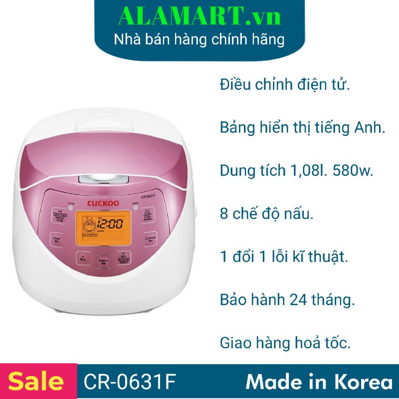 NỒI CƠM ĐIỆN TỬ CUCKOO CR-0631F 1.08 lít nhập khẩu Hàn Quốc dùng 2-4 người ăn nấu 0.5kg gạo