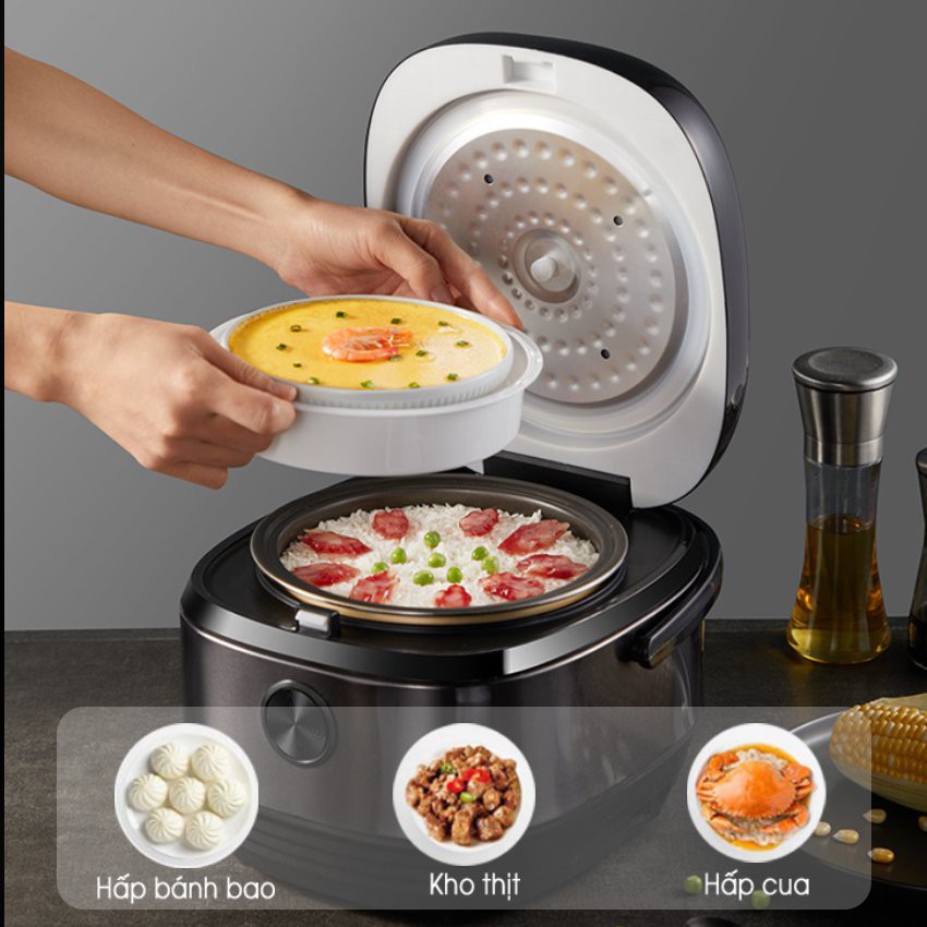 Nồi cơm điện tử đa năng cho gia đình từ 4-6 người lòng nồi phủ lớp chống dính 8 chức năng nấu (Hẹn giờ, hầm canh,...)