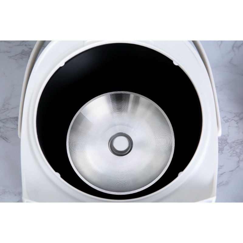 Nồi cơm điện này sử dụng công nghệ Fuzzy Logic đây là công nghệ dùng bộ vi xử lý thế hệ mới nhất để tự động điều chỉnh nhiệt độ nấu phù hợp với lượng gạo/loại gạo và nước trong nồi, giúp cơm nấu chín kỹ và ngon hơn kể cả khi bạn cho nhiều hay ít nước (sai số trong khoảng cho phép + 20% - 30%). Với thiết kế với mâm nhiệt phẳng, rộng, công suất 900W ngoài mâm nhiệt ở đáy còn có có mâm nhiệt phụ quanh thân và trên nắp giúp ổn định nhiệt độ nấu làm cơm chín nhanh, đều, dẻo và ngon hơn. Đặc biệt nồi có thể giữ nóng được cơm trong 24 giờ, giúp cơm sau khi nấu xong luôn nóng giảm thiểu khả năng ôi thiu như các loại nồi thông thường khác.