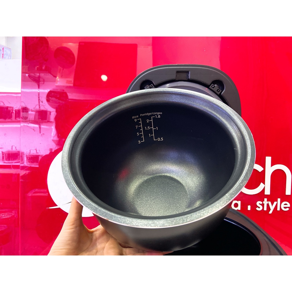 Nồi có thể tích 1,8L tiện lơi cho người sử dụng. Lòng nồi dày 2,4mm, giúp nồi giữ nhiệt lâu, cơm chín đều.