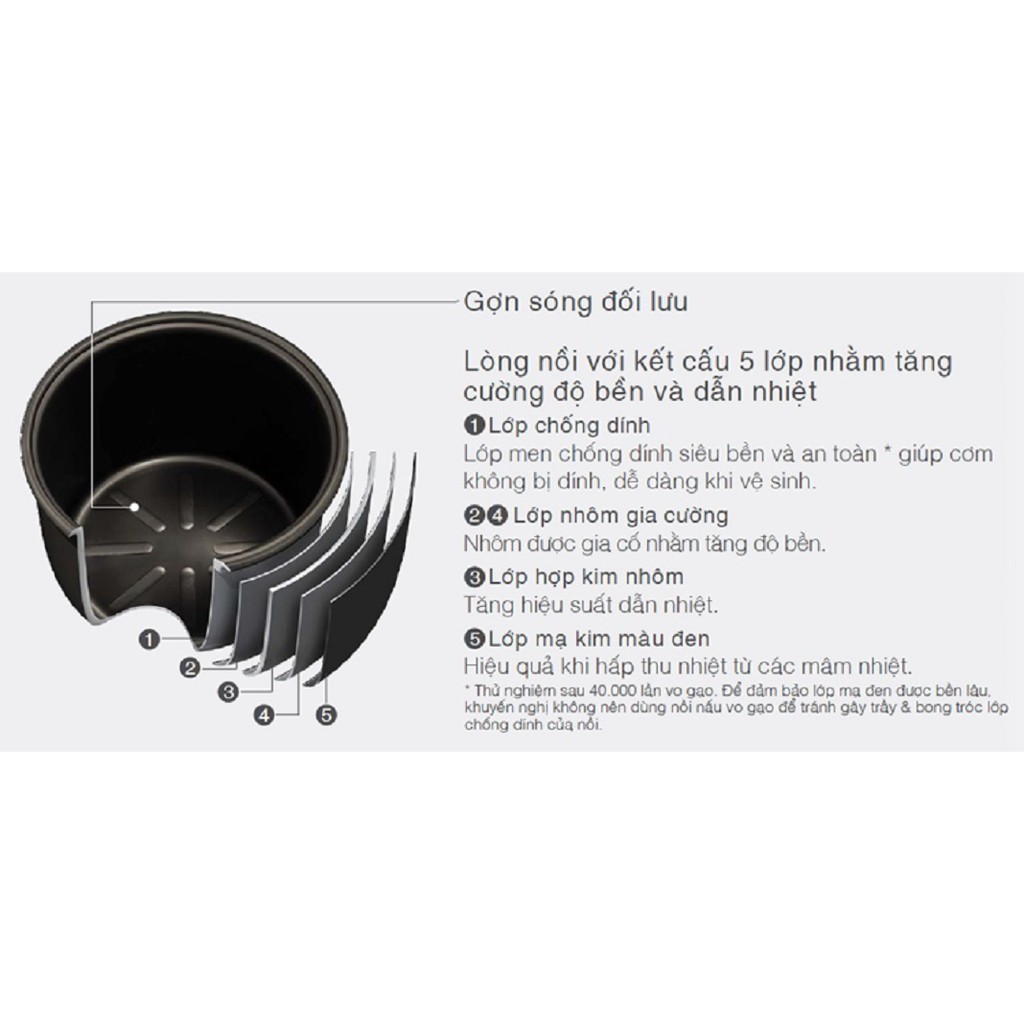 Lòng nồi với kết cấu 5 Lớp nhằm tăng cường độ bền và dẫn nhiệt: