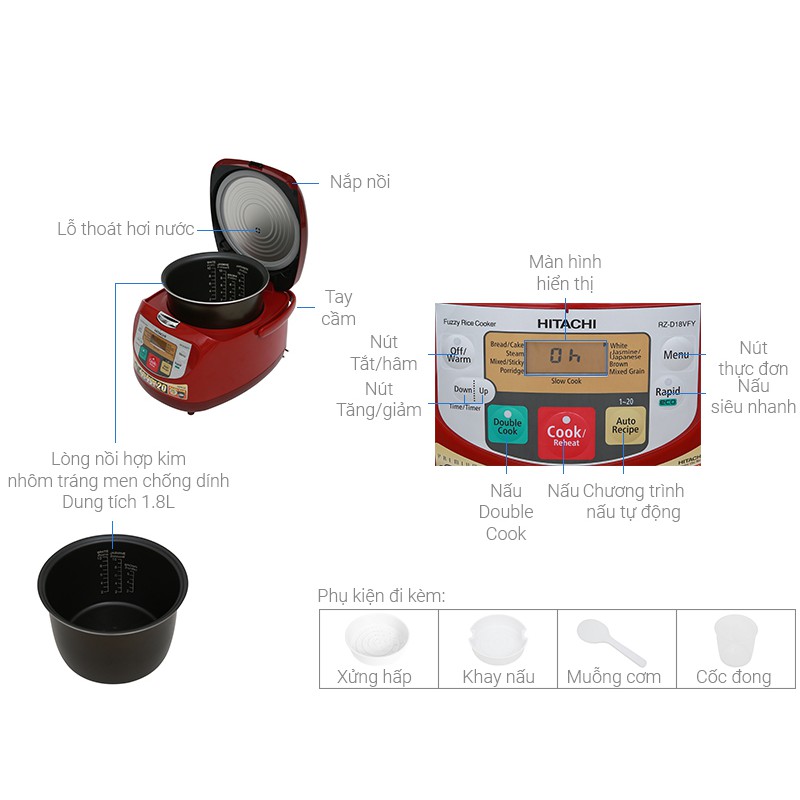 Thương hiệu: Hitachi | Xem thêm các sản phẩm Nồi cơm điện của HitachiMô tả ngắn