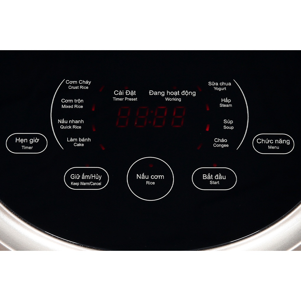 ●Nồi cơm điện tử trang bị 10 chức năng cài đặt sẵn hỗ trợ thực hiện đa dạng các món ănTiện quan sát và thao tác điều chỉnh khi đứng thẳng người với bảng điều khiển cảm ứng cùng màn hình hiển thị LCD nằm ở mặt trên của nồi.