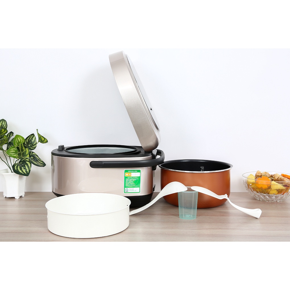 ●Dung tích 1.5 lít nấu được 5 - 8 cốc gạo kèm nồi, phục vụ tốt nhu cầu gia đình 2 - 4 thành viên