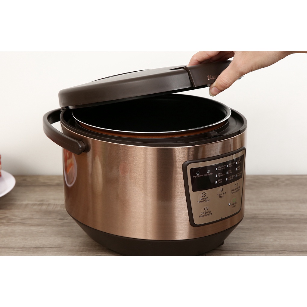 Lòng nồi có khả năng chịu nhiệt tốt, không sản sinh ra những khí độc gây hại trong khi sử dụng, đảm bảo an toàn sức khỏe người dùng, giúp hạt cơm chín đều thơm ngon.