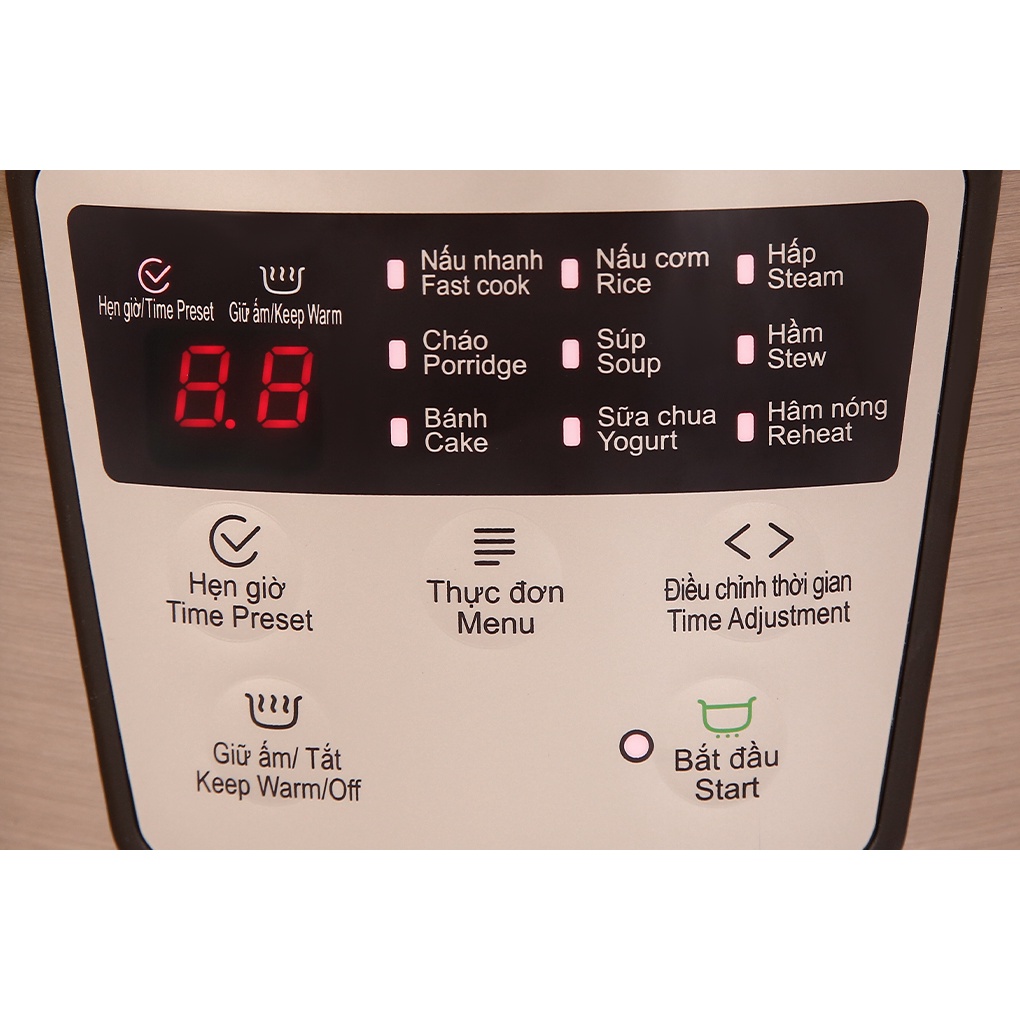 ●Nồi cơm điện sở hữu 10 chức năng nấu cài đặt sẵn, giúp bạn nấu được đa dạng món ăn ngon chỉ với thao tác đơn giảnCác chức năng gồm: nấu nhanh, nấu cơm, hấp, cháo, súp, hầm, bánh, sữa chua, hâm nóng và giữ ấm, hỗ trợ tối đa nhu cầu nấu nướng của chị em nội trợ, phục vụ nhiều món ăn dinh dưỡng, đáp ứng nhu cầu khẩu vị của các thành viên trong gia đình.