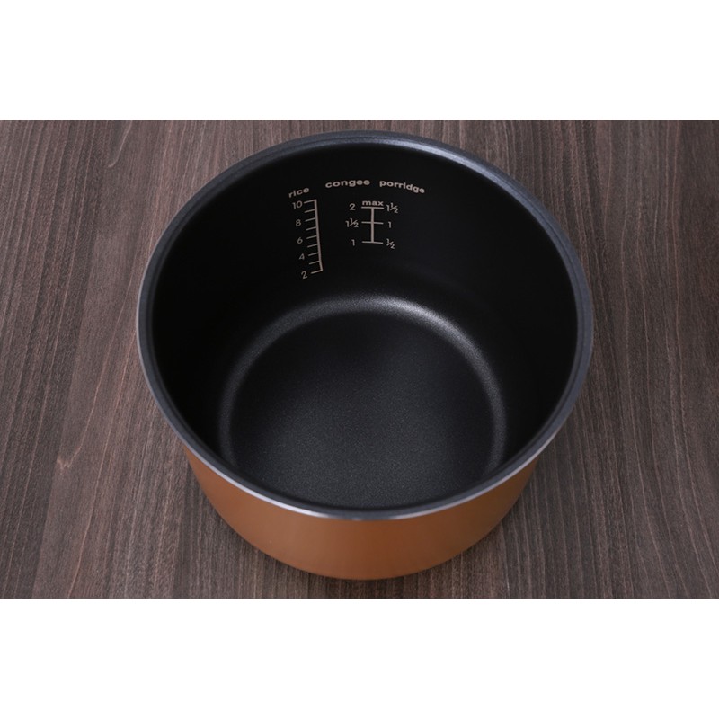 - Lòng nồi hợp kim nhôm chống dính dày bền, giữ nhiệt tốt, nấu cơm ngon không bị dính cháy, dễ vệ sinh sau khi dùng