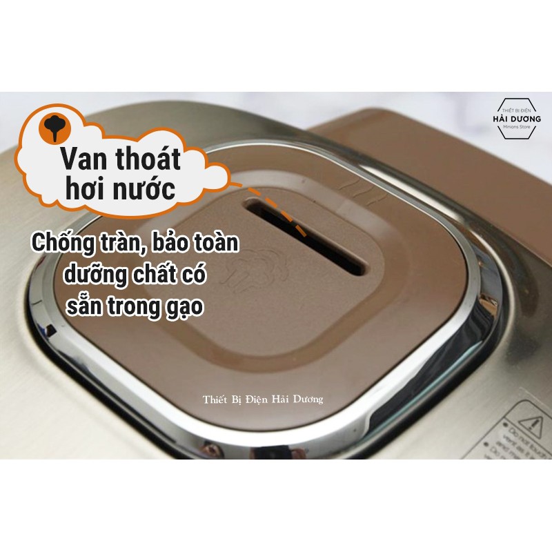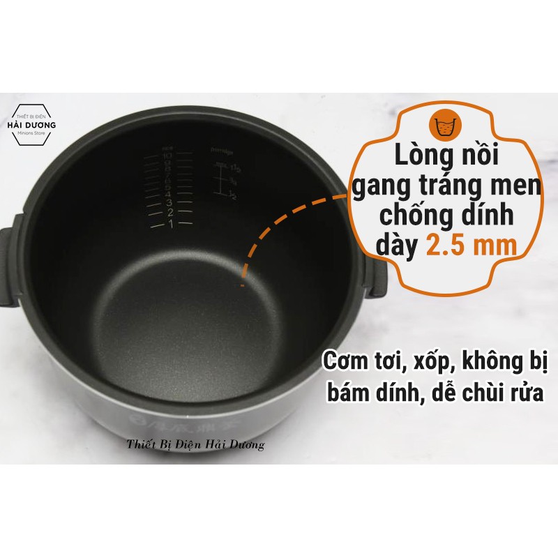 Lớp nồi chống dính khá dày 2.5mm, đáy nồi có cấu trúc tổ ong, thiết kế hình cầu tăng hiệu quả giúp gia nhiệt tốt hơn, cơm nấu không dính, dẻo hơn và ngon hơn.